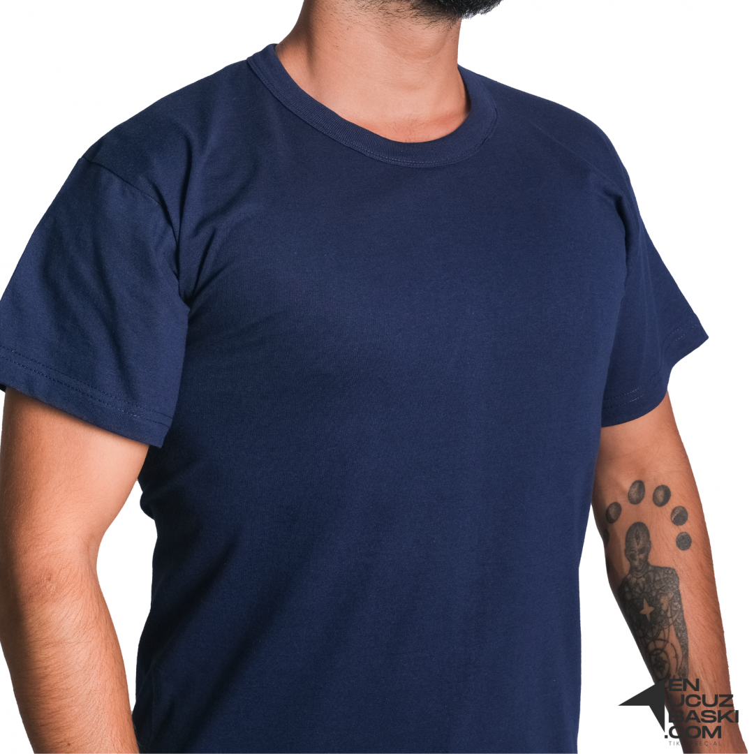 Baskılı Sıfır Yaka Basic Tişört Lacivert