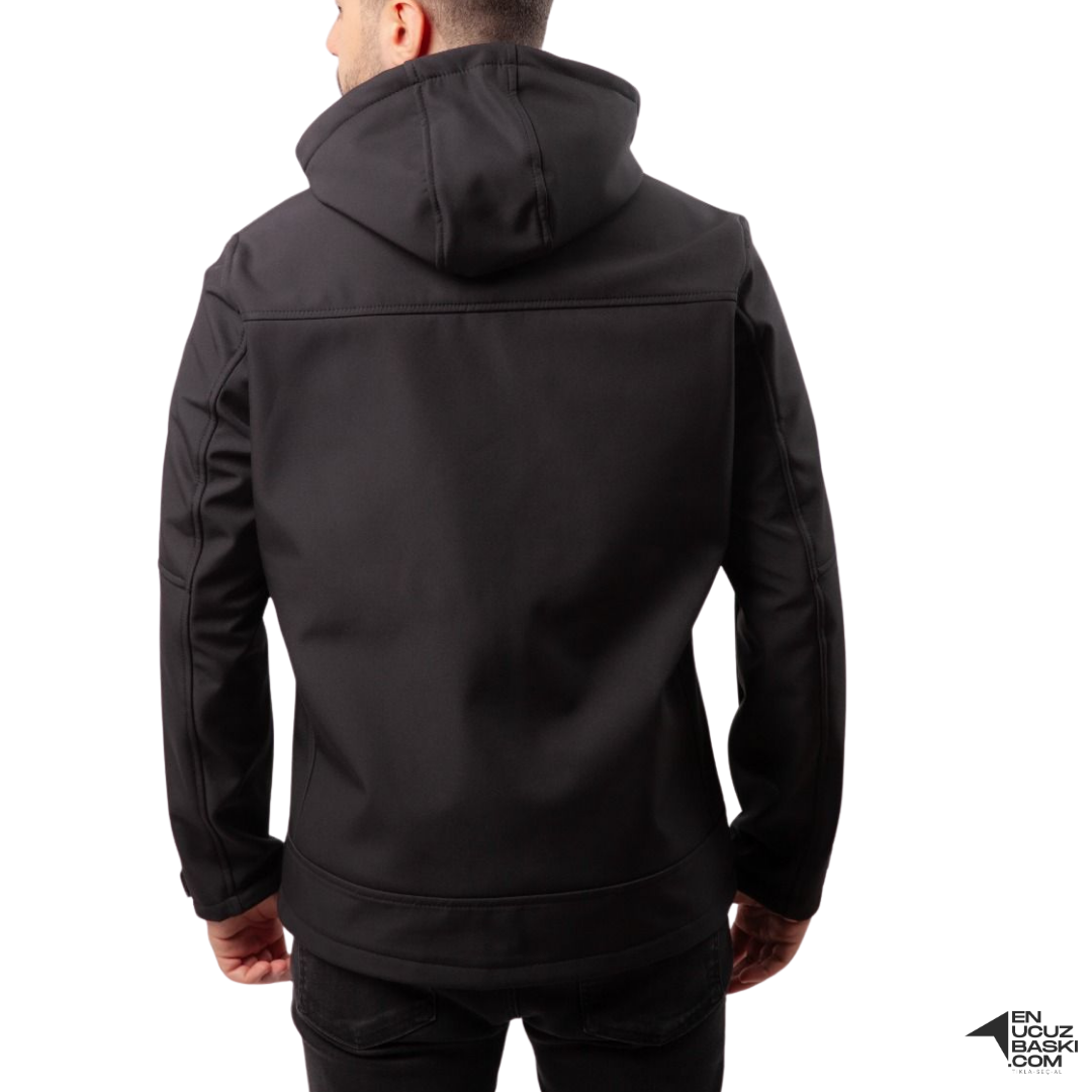 Baskılı Softshell Mont Kapşonlu / Siyah- İş Kıyafeti